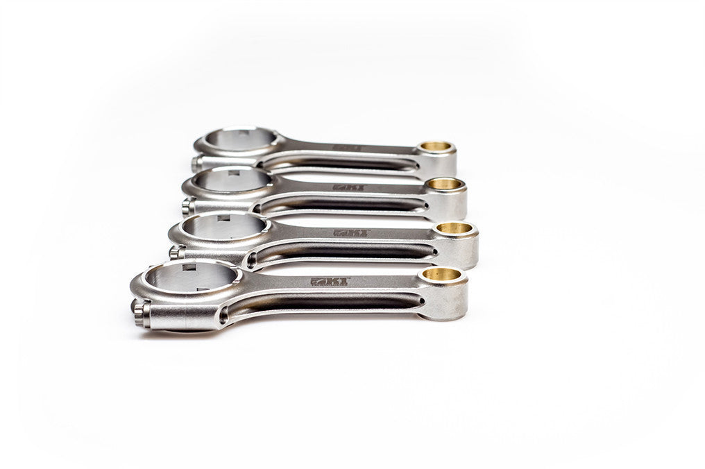 Billet 4340 Steel H Beam connecting rods. Closely monitored material mechanical properties for optimum performance. Designed and finish honed in the USA. Sizes held to some of the tightest tolerances in the industry, +/- .0001” and +/- 1 gram per end. Shot peened for improved fatigue life. Bronze wrist pin bushings. Exclusively using ARP 2000 fasteners.