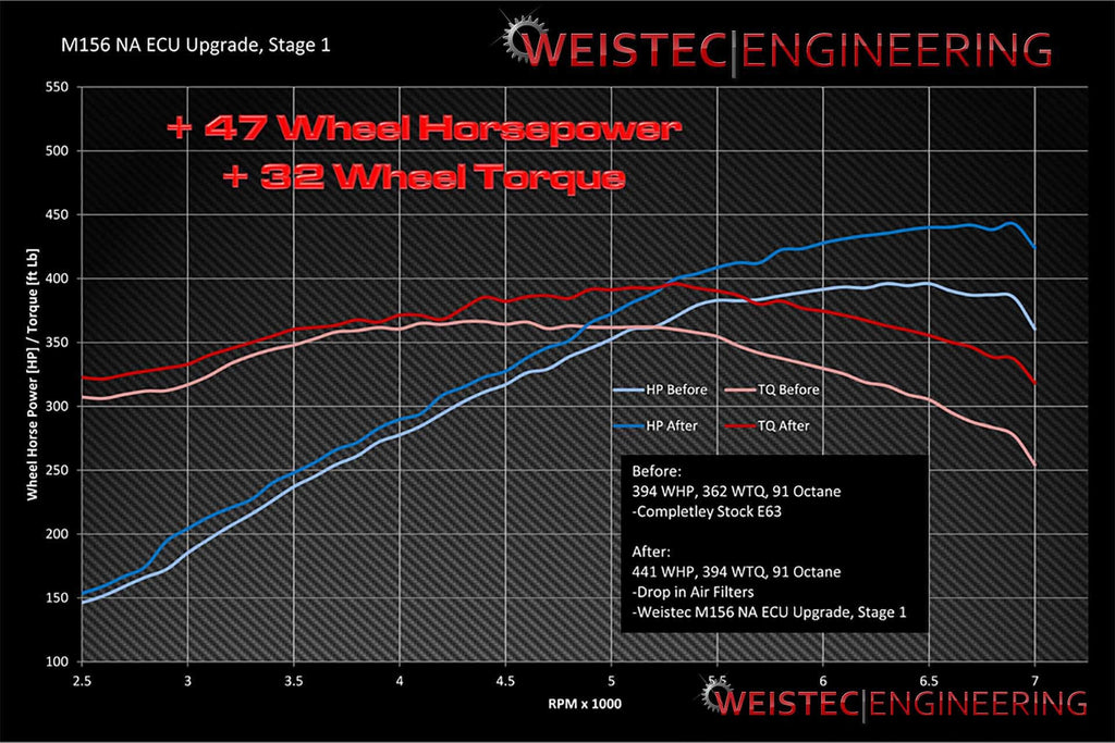Weistec Engineering has created a strong yet reliable tuning solution that utilizes the same calibration technology that has been applied to our Supercharger System. With a keen understanding for optimal running conditions for the M156, they have revised many features of the ECU which creates an astounding 441 horsepower to the wheels on 91 octane.